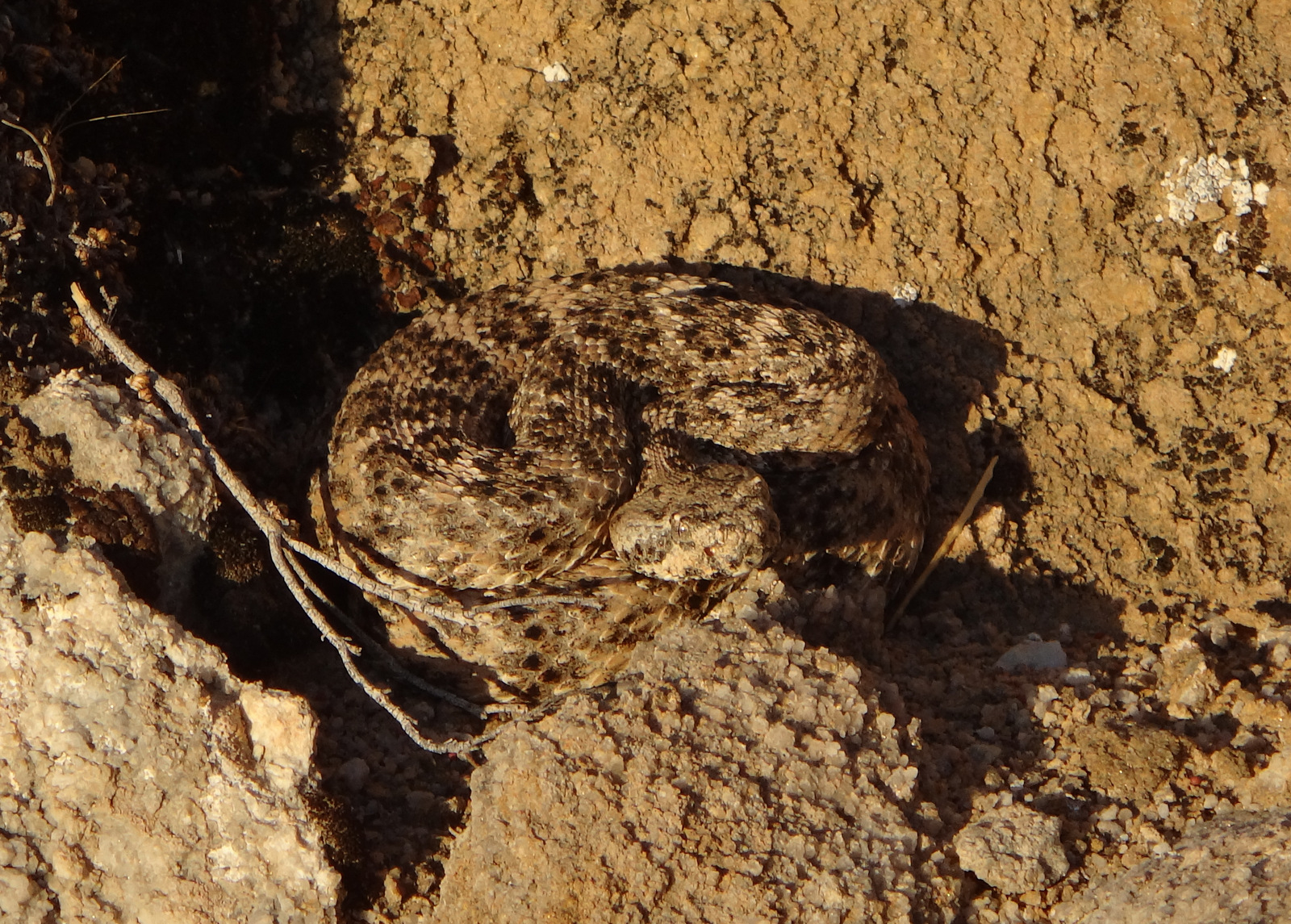 At one rest break we sat down with a sleeping rattlesnake nearby. It didn't seem to care about our presence and posed for several pictures all coiled up in its bed of rocks.