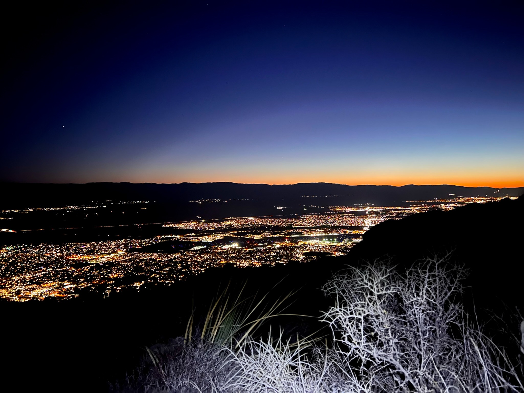 Pretty soon, we are rewarding the steep uphill with amazing night views of Palm Spring. Did not see my hiking buddy in the past 6 month, so we are talking a lot, while hiking uphill…errr…ok, I am falling behind anyways and after an hour I DEFINITIVELY feel my legs and force myself to slow down a bit, but the view is breathtaking. Making good progress and we so excited once we reach the worlds most famos pile of rocks that we are heading down the wrong trail. Oh no, we soon realize, but have to hike back up again, wasn’t more that 1/4 Mile, oh well.
