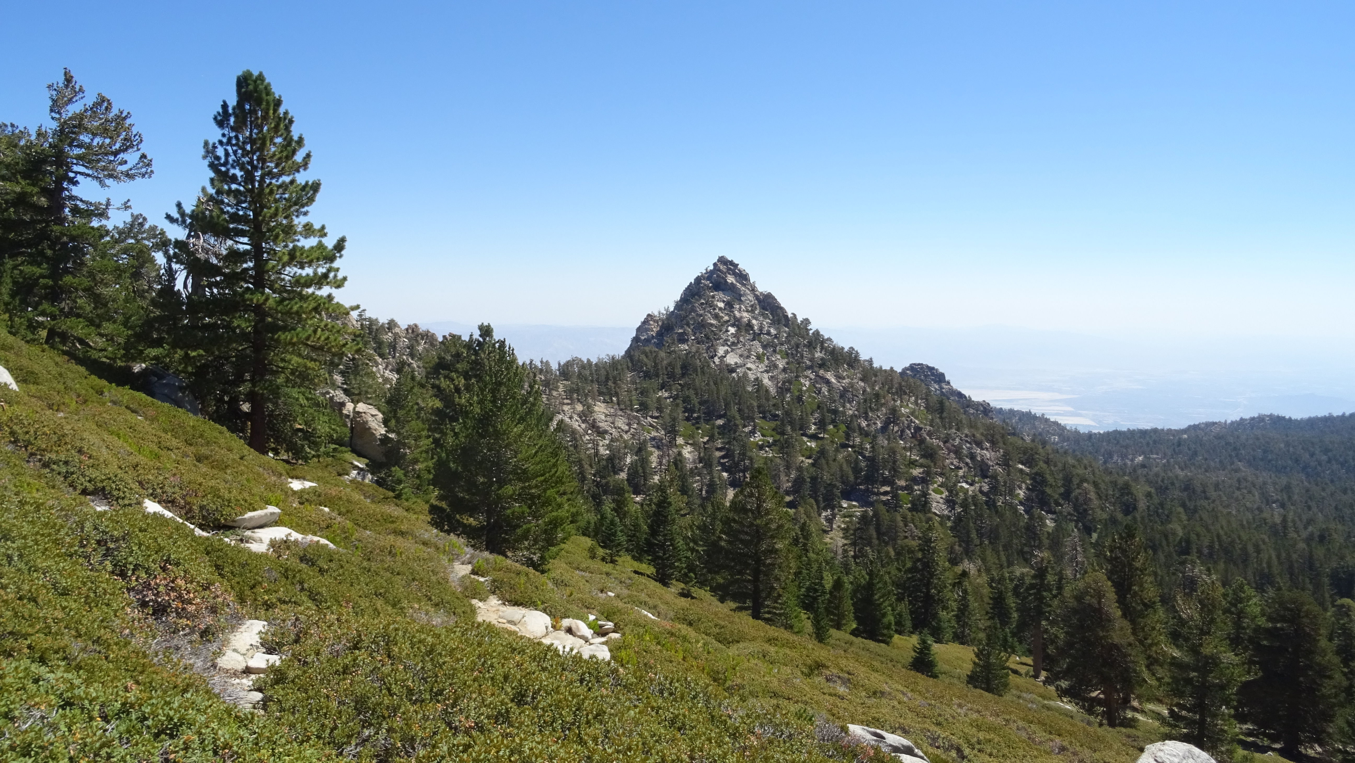 The views from the summit are fantastic. Here's a view of Tahquitz Peak. Can you make out the fire lookout?