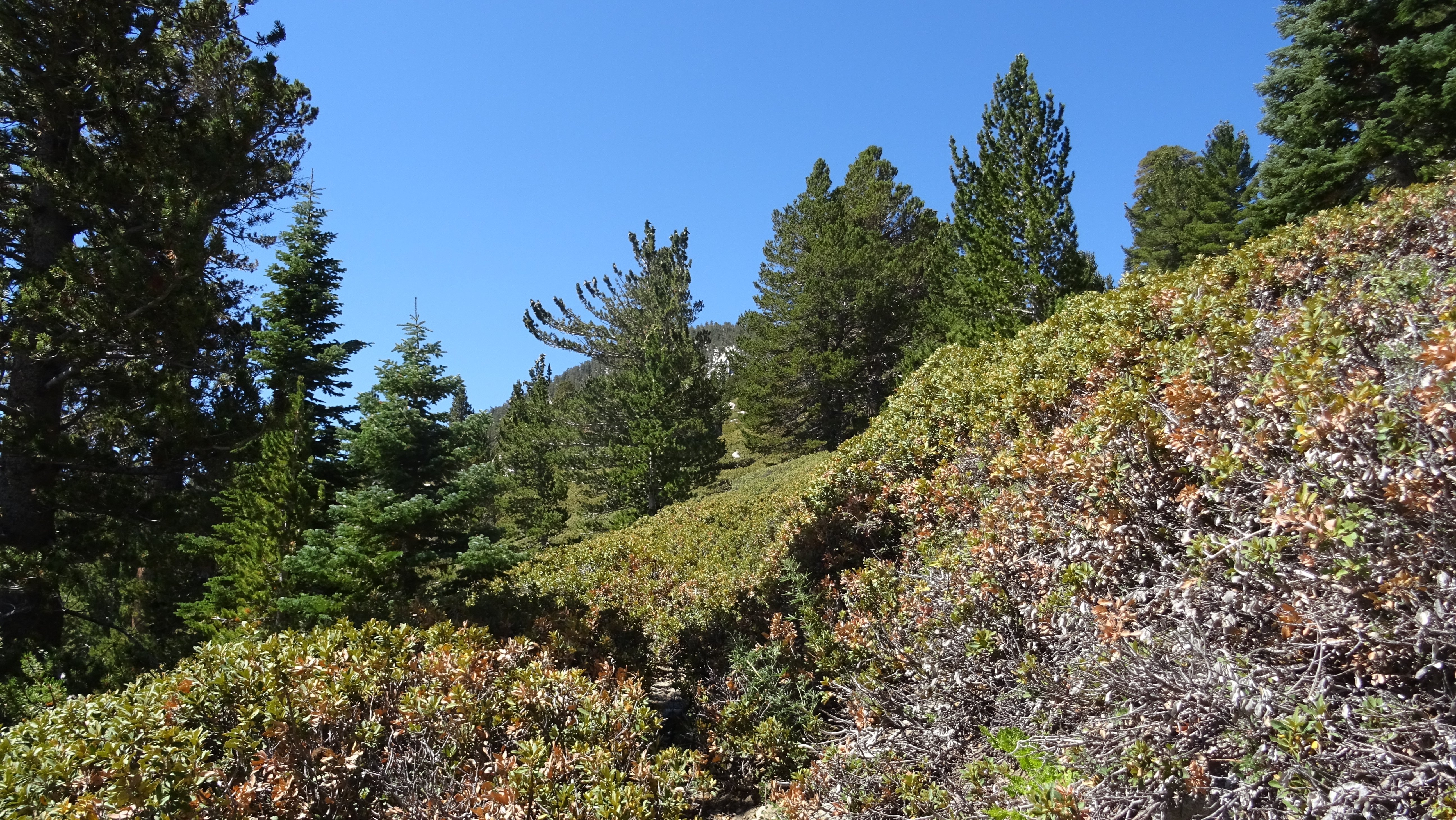 We took the Sid Davis route, a nice little route that leads to Tamarack Valley. The last little bit before the Quartz campsite is quite steep, so here we are taking a little breather.
