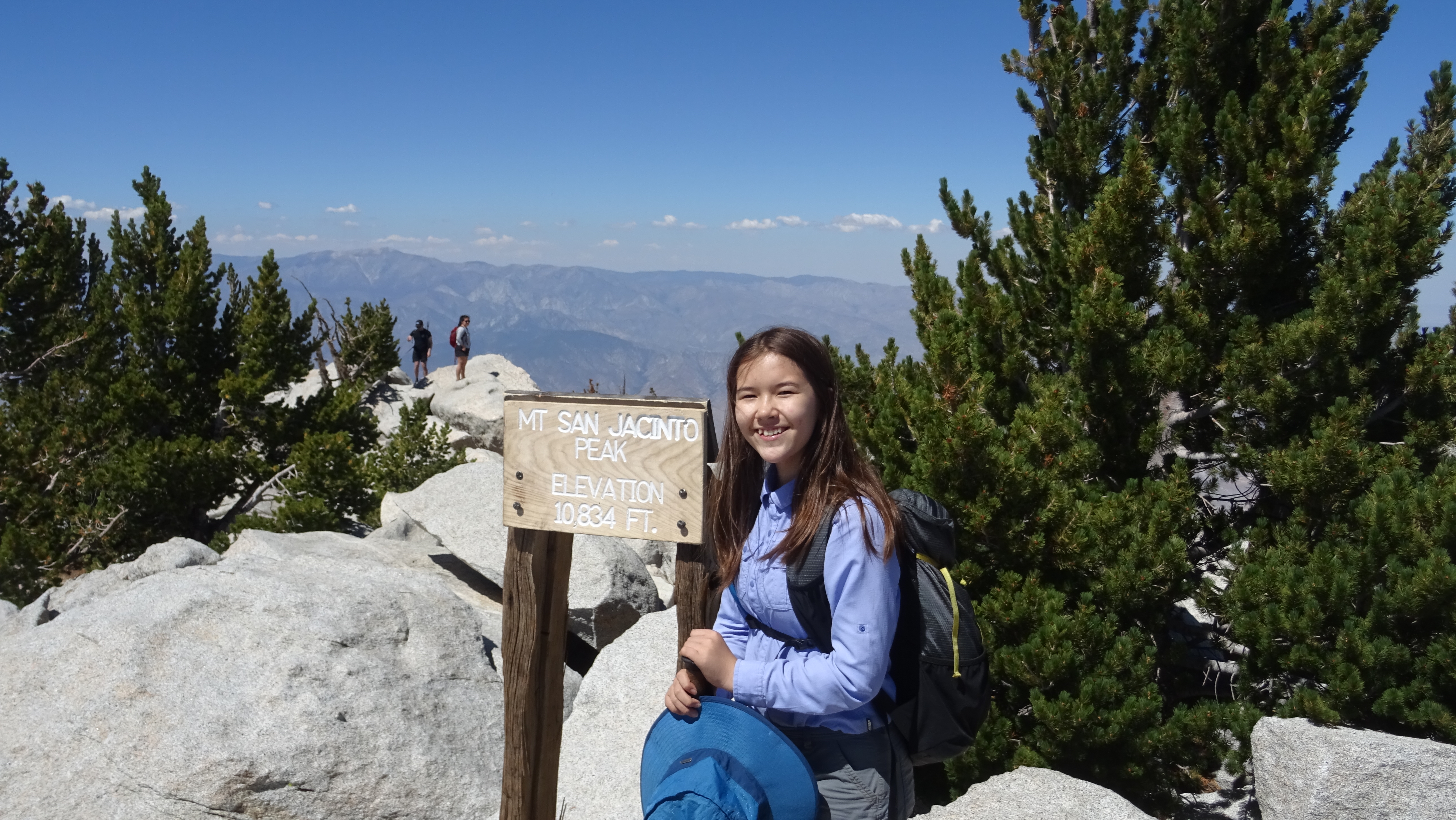 At long last, the accomplished alpinist reaches her goal, dragging her huffing and puffing old man behind her. There's a new sign atop the peak saying "Mt San Jacinto Peak" which cracks me up. Summit names include either "Mount" or "Peak" but not both. It's sort of like naming something the Department of Redundancy Department. The correct name of the high point of the San Jacinto Mountains is San Jacinto Peak. For reasons unknown the State Park was named erroneously and there's been confusion ever since.