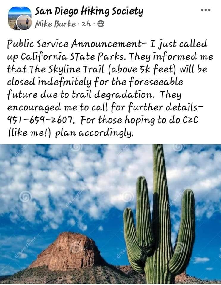 And so, will the SP enforce this, (I'm sure their reading this), and if so, to what extent. And, will it cause some to seek out an alternate, (if even for the last section, yeah, it's very steep, but there are ways), or post someone on the trail? If so, is that good use of limited resources, which has been an issue for many, many years with these agencies.