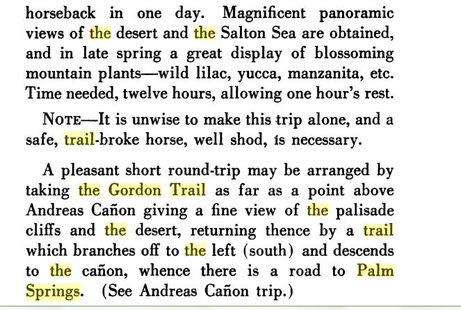 From "Our Araby: Palm Springs and the Garden of the Sun" J. S. Chase, 1920: