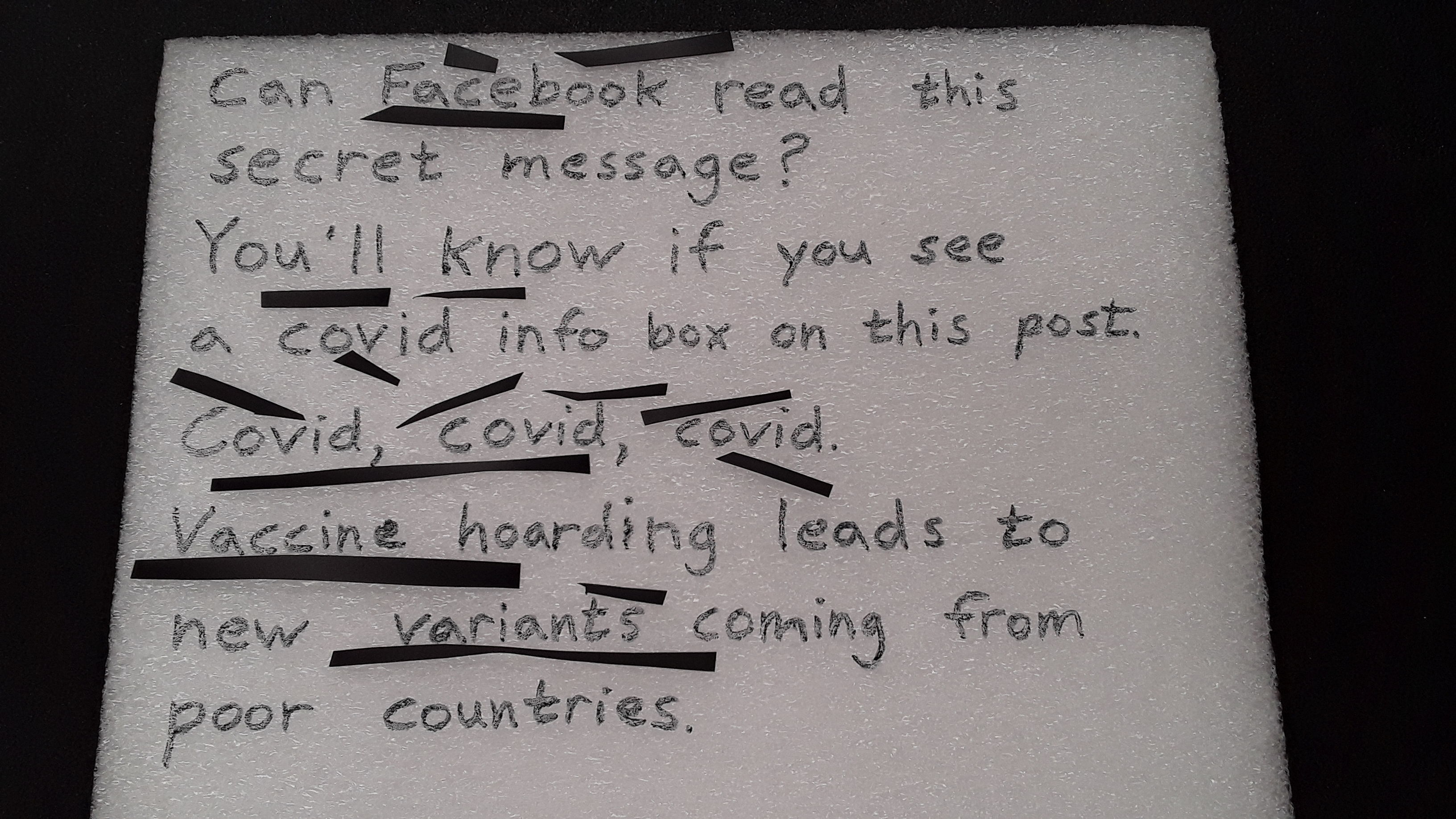 Anyways, I did 5 experiments on Facebook to see if the Covid info/warning box/bubble shows up. The box only showed up in 2 out of 5 experiments. Here they are: