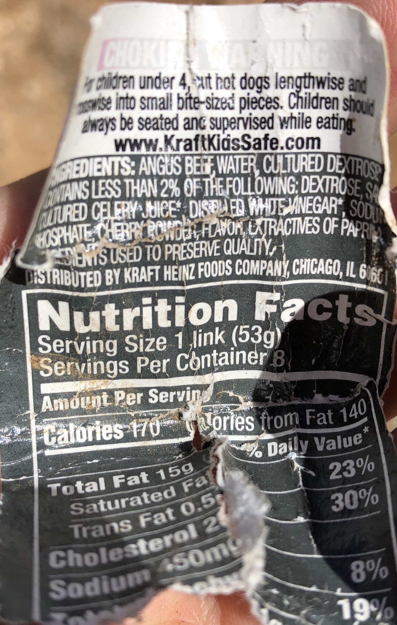 The label is probably from a recent hiker. It would have been way more weathered if it was out there for 8 years. From memory Bill did carry some "meat snacks" which was probably something like Slim Jims ( yucky ).