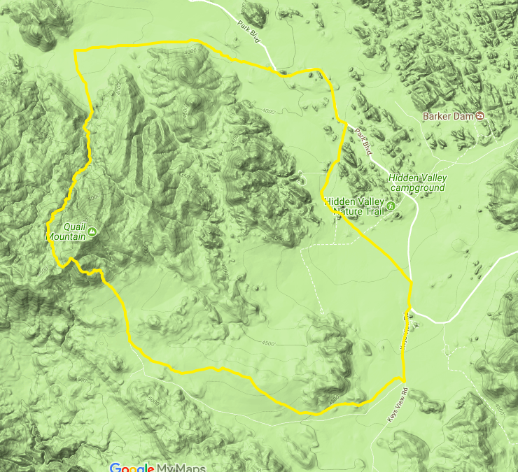 Here's another trip report (Summary: nothing new really...). I did a hike on Saturday, April 14, at Joshua Tree. I started around 10:15 a.m. and finished at 4:00 p.m. I had initially intended to go from Juniper Flats parking lot, via the C&H/Stubbe Springs Loop to Juniper Flats area, and up towards the west of Quail Mtn. to Smith Water Canyon and then back. My hike unfortunately did not go as planned haha and took a wrong turn I guess... After reaching just to the west of Quail Mtn., I descended and ultimately followed a dry river bed towards Samuelson's Rock/Quail Spring's area and then took a big loop back along Park Road, towards the Lost Horse Ranger Station, back to the parking lot. All in all, this took ~18 miles and I didn't get to do as much searching as I'd like, but I'm sure something along these lines may have happened to Bill...