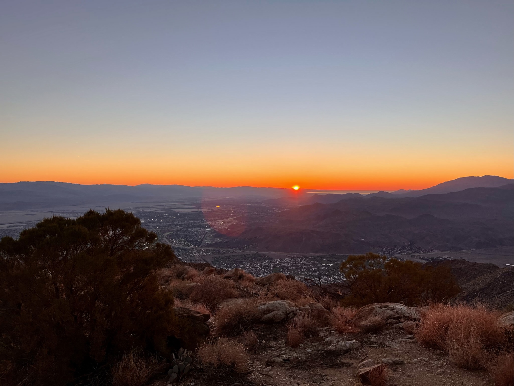Pretty soon, we are rewarding the steep uphill with amazing night views of Palm Spring. Did not see my hiking buddy in the past 6 month, so we are talking a lot, while hiking uphill…errr…ok, I am falling behind anyways and after an hour I DEFINITIVELY feel my legs and force myself to slow down a bit, but the view is breathtaking. Making good progress and we so excited once we reach the worlds most famos pile of rocks that we are heading down the wrong trail. Oh no, we soon realize, but have to hike back up again, wasn’t more that 1/4 Mile, oh well.