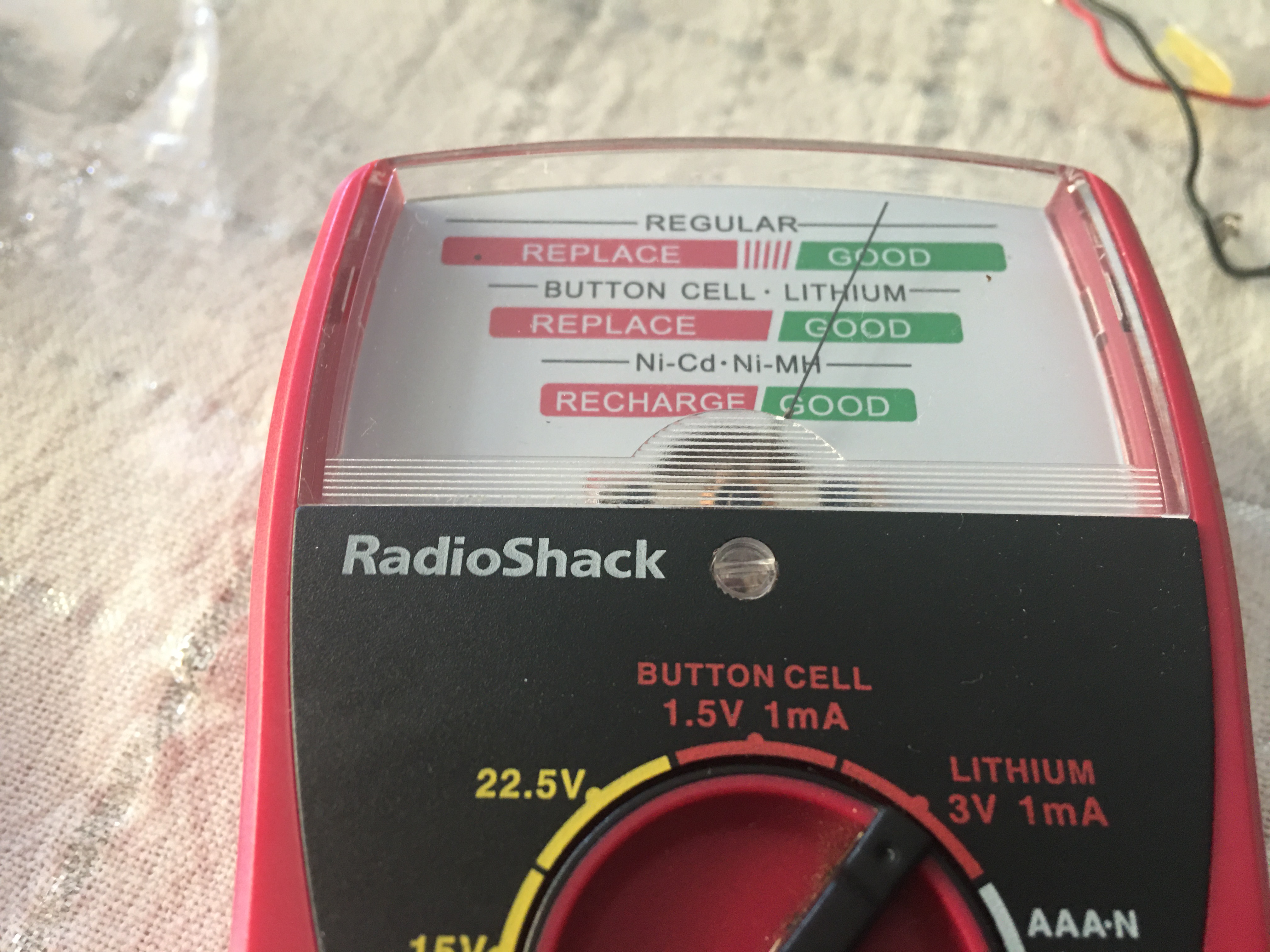 Yeah, I've had that Radio Shack battery tester is at least 25 years. It's still going. I love that thing! :D It's so nice to know that my batteries are good to go before a trip.