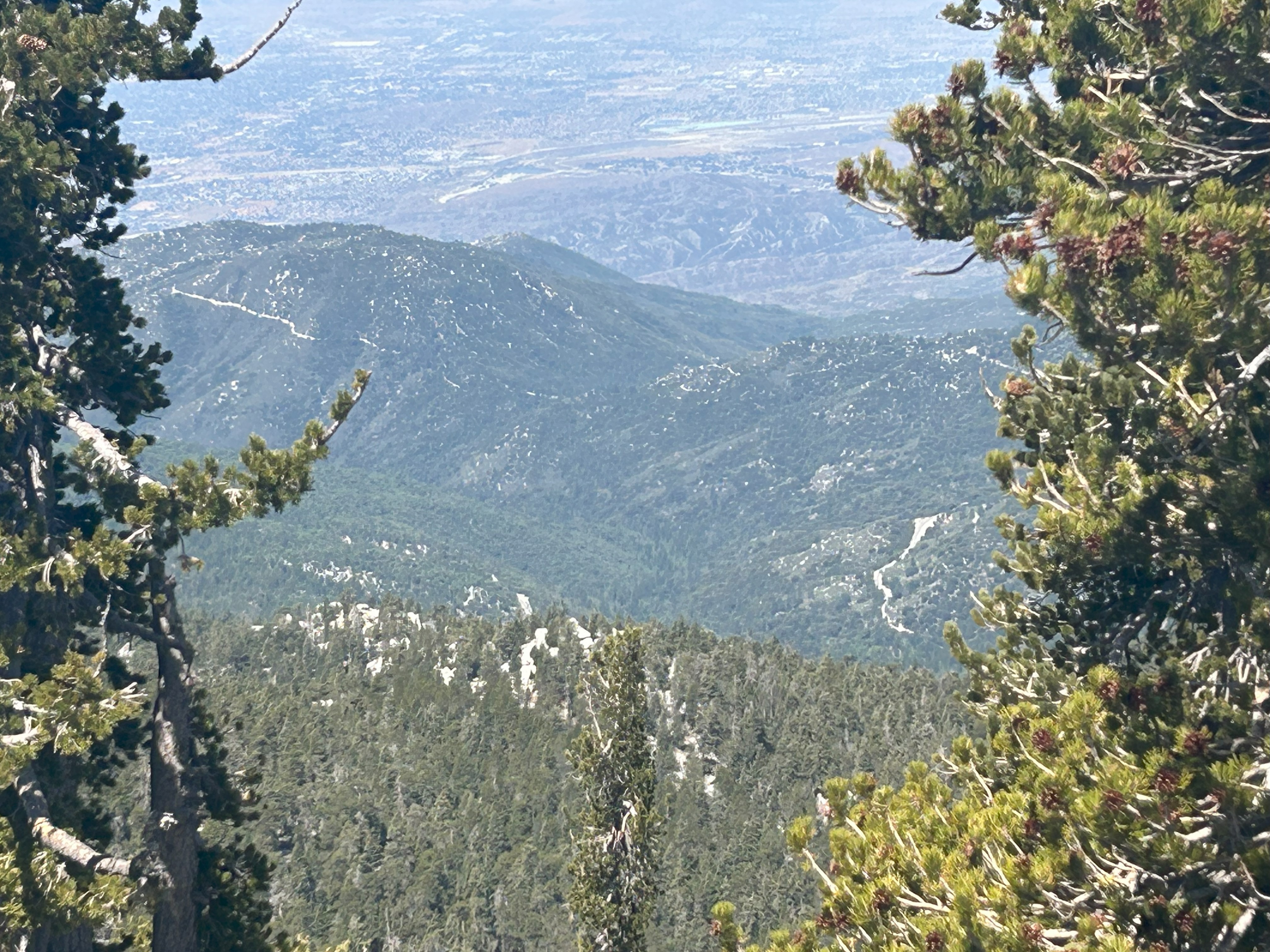 For future fun, there's a section corner that's fairly easy to find -- I saw it from a distance -- in the flatish area ENE of Joyce Peak, SW of Jean Peak. It's a stack of rocks with carvings in the trees around it. This is the SW corner of section 21, T4S, R3E, SBBM, where it meets sections 20, 29, and 28. One mile north of there, SW of Little Folly Peak (between Folly Peak and San Jacinto Peak) are two section corners. I say two because there's an off set where they had to "fudge" the section lines for whatever reason. The fudge is only about 200 feet, but they would normally have two section corner monuments in such a case.